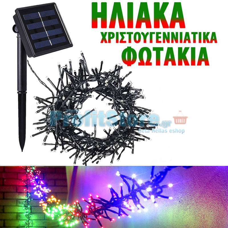 Ηλιακά Πυκνά Χριστουγεννιάτικα Λαμπάκια Πολύχρωμου RGB Φωτισμού - Φωτάκια Εξωτερικού Χώρου 240LED με Φωτοβολταϊκό Πάνελ - Firecracker Light