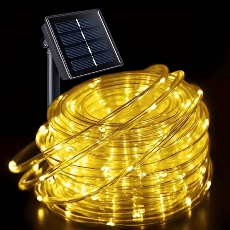 Ηλιακά Χριστουγεννιάτικα Λαμπάκια σε Φωτοσωλήνα 10m - Λευκό Θερμό 100 LED με Φωτοβολταϊκό Πάνελ - Arrango