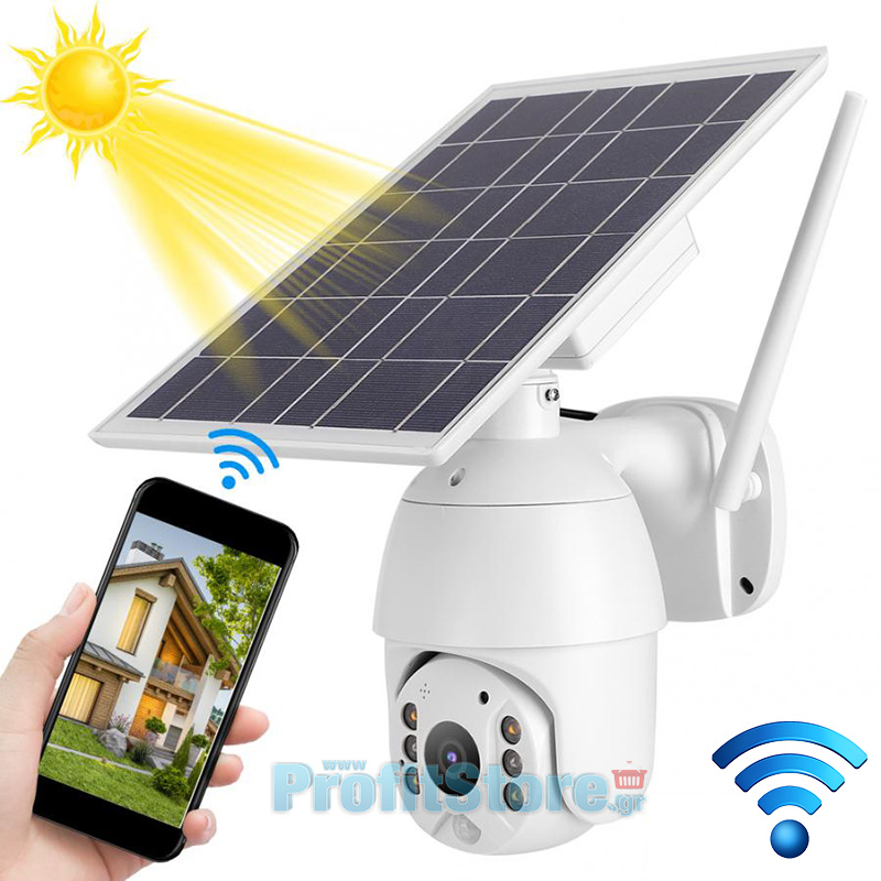 Ηλιακή Αδιάβροχη Ασύρματη IP WiFi Κάμερα Full HD 1080p P2P Εξωτερικού Χώρου με Νυχτερινή Όραση, Ανιχνευτή Κίνησης, Ειδοποίηση στο Κινητό, Μικρόφωνο, Ηχείο