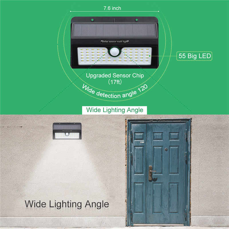 Αυτό το ηλιακό επιτοίχιο ευρυγώνιο φωτιστικό 170ᵒ είναι ένα πρακτικό, δυνατό φως me 55 LED ~400 Lumens εξωτερικού χώρου το οποίο δεν καταναλώνει ρεύμα αφού λειτουργεί με ηλιακή ενέργεια, ενώ παράλληλα παρέχει τον απαραίτητο φωτισμό στους χώρους που εσείς θα επιλέξετε!