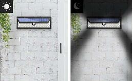 Αυτό το ηλιακό επιτοίχιο ευρυγώνιο φωτιστικό 180ᵒ είναι ένα πρακτικό, δυνατό φως LED ~400 Lumens εξωτερικού χώρου το οποίο δεν καταναλώνει ρεύμα αφού λειτουργεί με ηλιακή ενέργεια, ενώ παράλληλα παρέχει τον απαραίτητο φωτισμό στους χώρους που εσείς θα επιλέξετε!