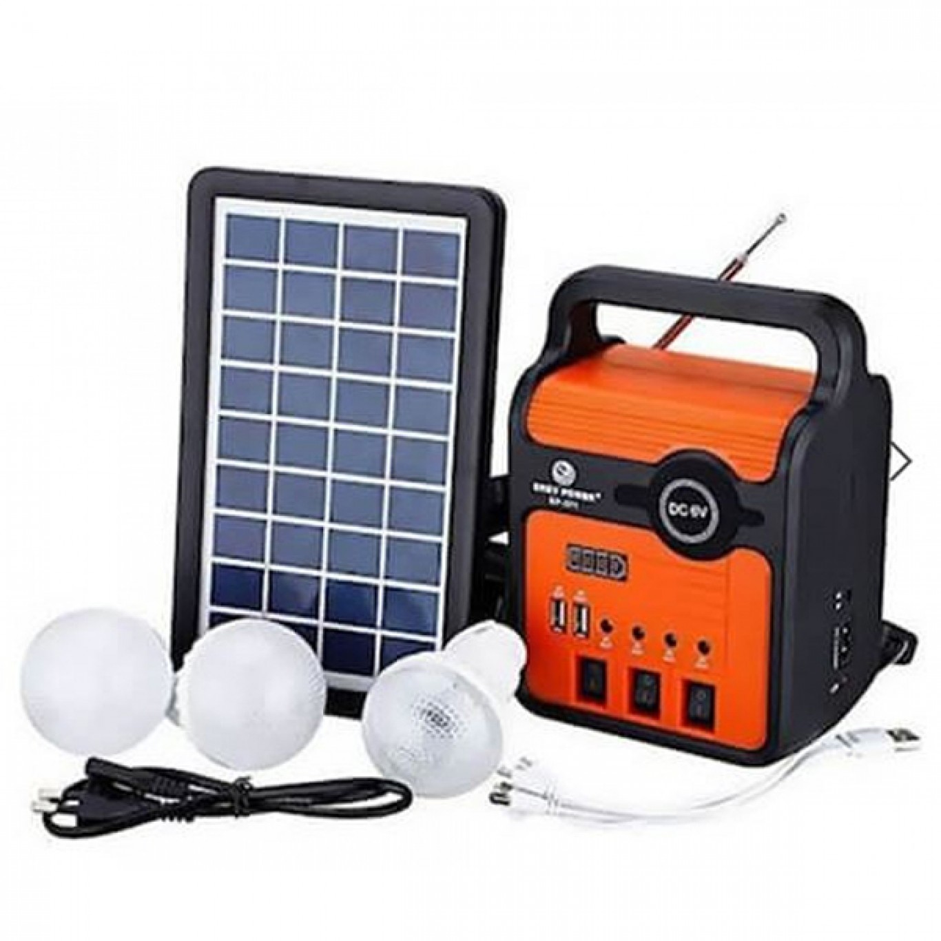 Ηλιακό Σύστημα Φωτισμού με Ραδιόφωνο – Bluetooth – Πάνελ – Power Bank- 3 Λάμπες Φωτισμού