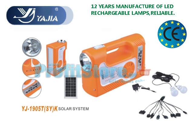 Ηλιακό Σύστημα Φωτισμού & Φόρτισης με USB/SD Mp3 Player, FM Radio, Ηλιακό Panel, Μπαταρία, Ισχυρότατο Φακό και Φωτιστικό & 2 Λάμπες LED 100LM - YJ-1905
