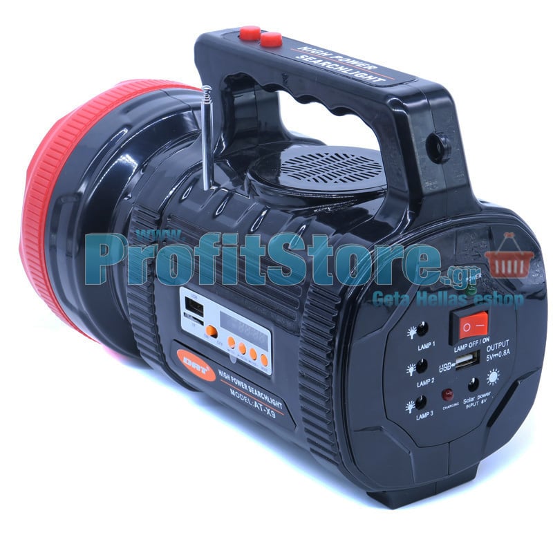- Μπαταρία - Φακός/Φωτιστικό & Ηχοσύστημα Mp3/USB/TF/FM Player