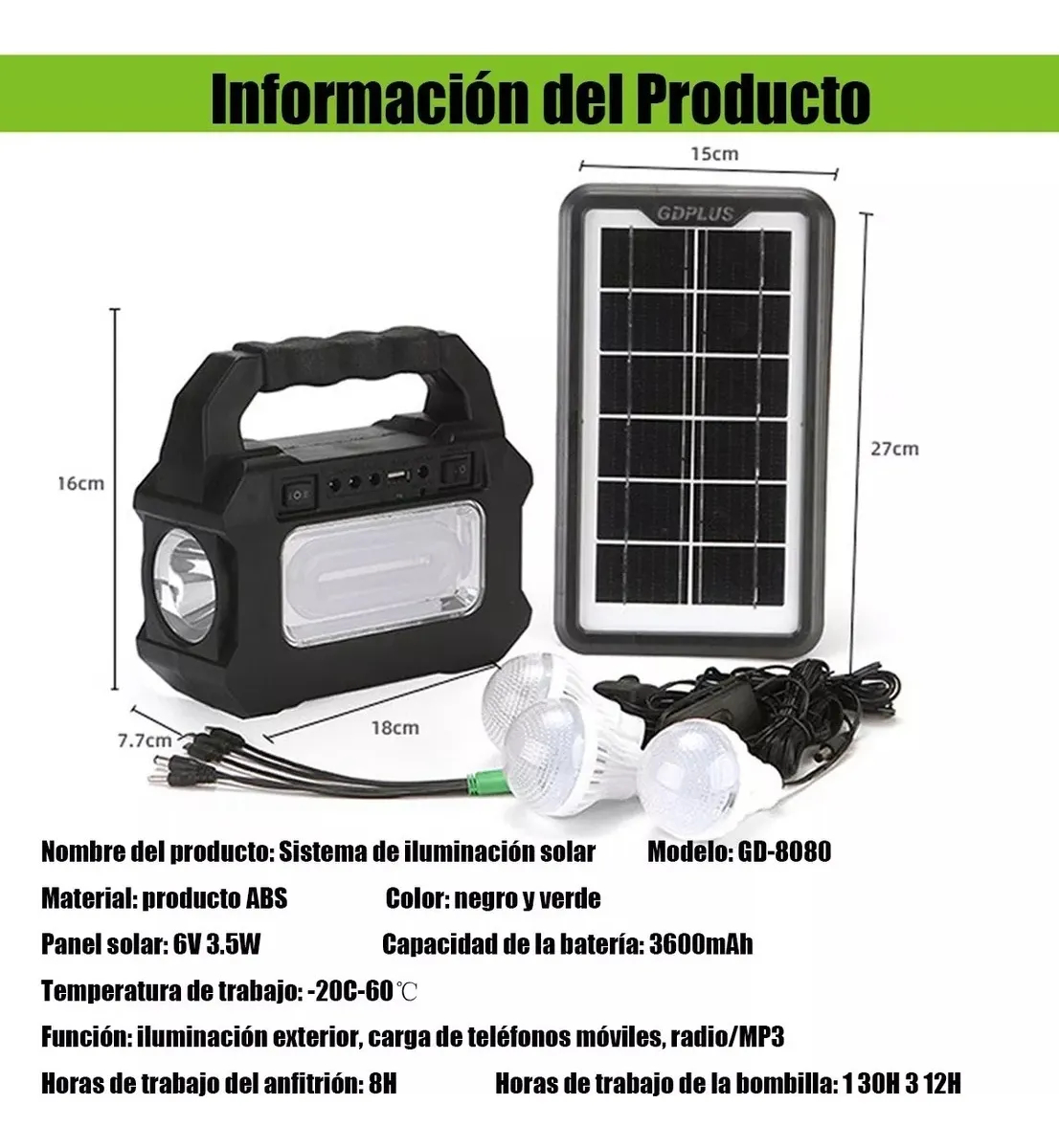 - Τροφοδοσία ηλιακού πάνελ: 6V / 3.5W