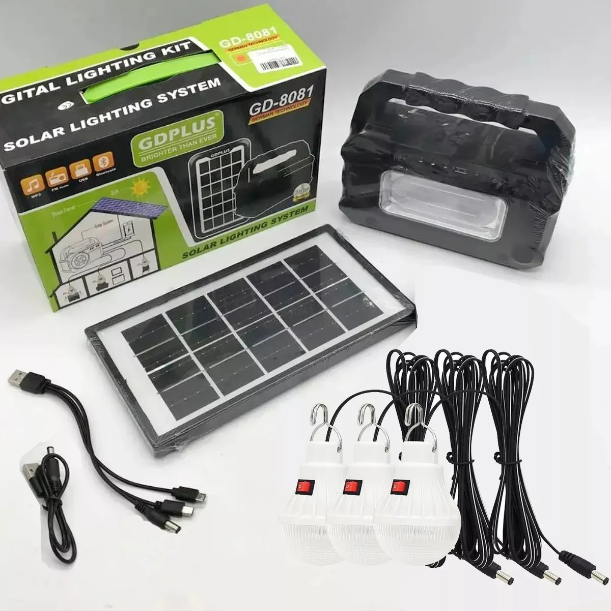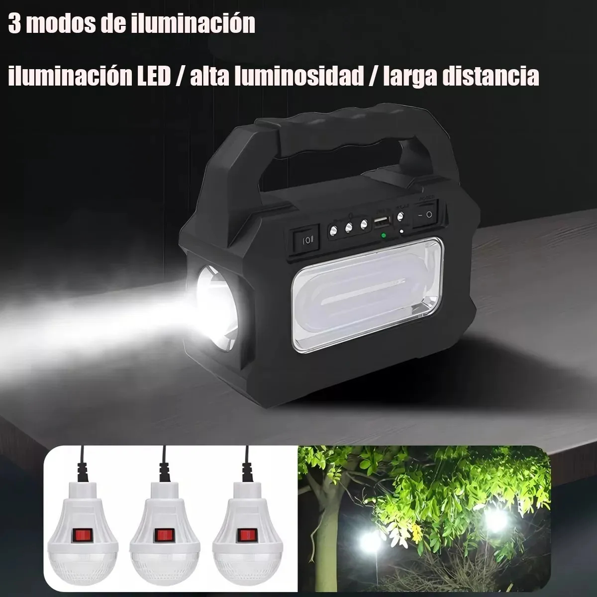Ηλιακό Σύστημα Τριπλού Φωτισμού με Ηχείο, Φακό, 3 Λάμπες LED & Φορτιστή USB