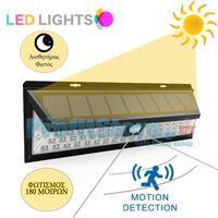 Ηλιακό επιτοίχιο ευρυγώνιο φωτιστικό - προβολέας 180ᵒ LED ~400 Lumens με ανίχνευση κίνησης, αισθητήρα φωτός / φωτοκύτταρο και 2 λειτουργίες φωτισμού. Κατάλληλο για όλους τους εξωτερικούς χώρους όπως την εξώπορτα, το γκαράζ, τις σκάλες, τον κήπο, τις βεράντες κα.