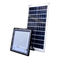 Ηλιακός προβολέας LED σε μαύρο χρώμα, με ισχύ 300W. Διαθέτει βαθμό προστασίας IP67, που δηλώνει ότι έχει πλήρη προστασία από τη σκόνη και αδιάβροχη προστασία από προσωρινή βύθιση σε νερό.