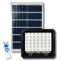 Ισχυρός αδιάβροχος ηλιακός προβολέας LED 50W με 500 lumen, 3 επίπεδα φωτισμού, τηλεχειριστήριο και πάνελ 2 m για μέγιστη απόδοση. Κατάλληλος για κήπο, αυλή και επαγγελματικούς χώρους. Ιδανικός για ισχυρό, οικονομικό και σταθερό εξωτερικό φωτισμό.