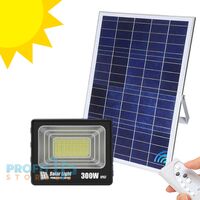Στεγανός ηλιακός προβολέας LED 300W με ψυχρό λευκό φως 6500K, τηλεχειριστήριο και προστασία IP66. Ανθεκτικός σε εξωτερικές συνθήκες, προσφέρει έως 8 ώρες φωτισμού, με ηλιακό πάνελ 100W και 336 LED υψηλής φωτεινότητας. Ιδανικός για κήπους, αυλές και εξωτερικούς χώρους.