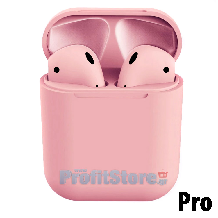 Pro Version χρωματιστά ακουστικά αφής σε ροζ χρώμα, bluetooth 5.0, τύπου iPhone με αυτοματοποιημένη σύνδεση με pop-up window στο κινητό με το άνοιγμα της θήκης φόρτισης.