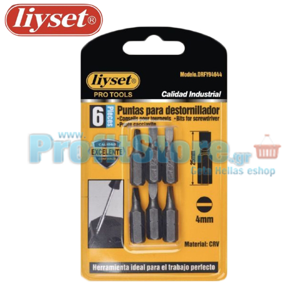 Ίσιες Μύτες για Κτυπητά Κατσαβίδια Liyset Σετ 6 Τεμαχίων 4mm