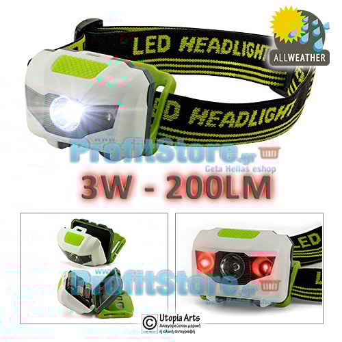 Ισχυρός Φακός Kεφαλής LED 3W - 200LM - Headlight HL200 WeatherProof