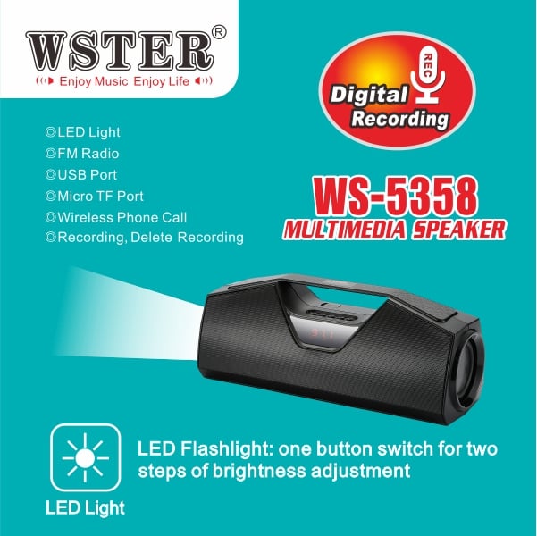 Aσύρματο Bluetooth ηχείο για να ακούτε τη μουσική σας όπου εσείς θέλετε. Ιδανικό για σύνδεση με Tablet, Smartphones, Iphone & Ipad. Διαθέτει Ανοικτή Ακρόαση για συνομιλίες από το κινητό σας, φακό LED, Fm ψηφιακό ραδιόφωνο, ηχογράφηση (audio recording), θύρες USB, Micro SD / TF κάρτας και AUX input ενώ λειτουργεί και ανεξάρτητα ως mp3 Player.