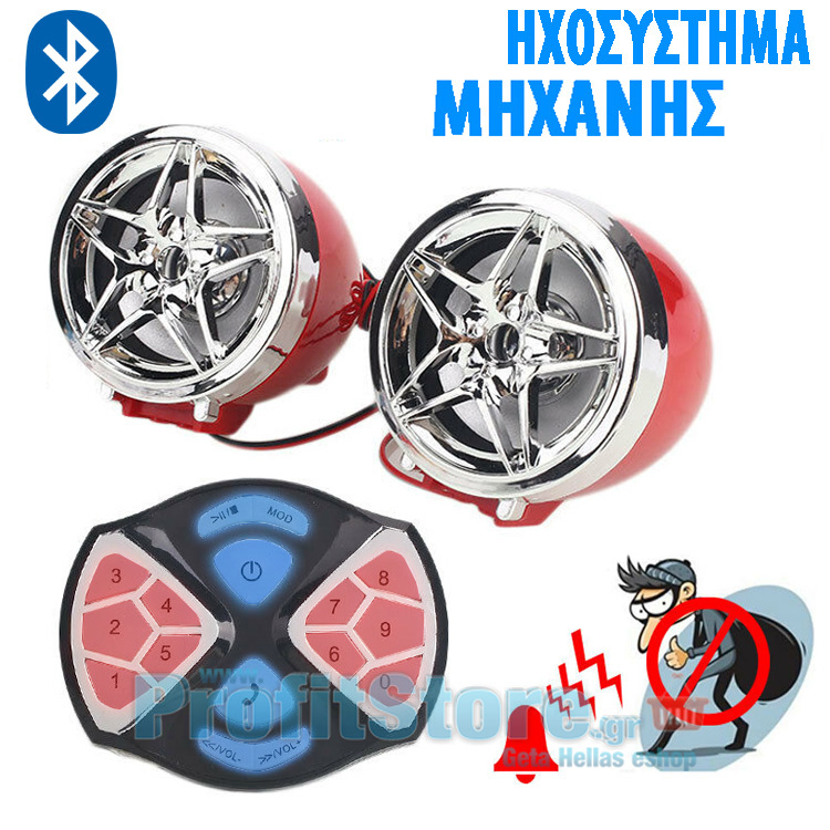 Ηχοσύστημα Bluetooth Handsfree USB,SD Mp3 Player - FM Radio Μοτοσυκλέτας , Μηχανής με LED Τηλεχειριστήριο & Μικρόφωνο