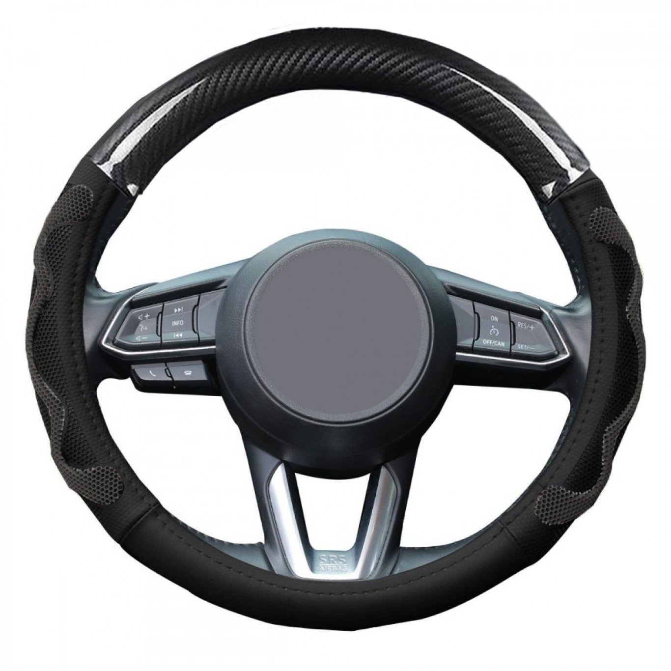 Κάλυμμα Τιμονιού Δερματίνη 37-38cm - CarSun Μαύρο