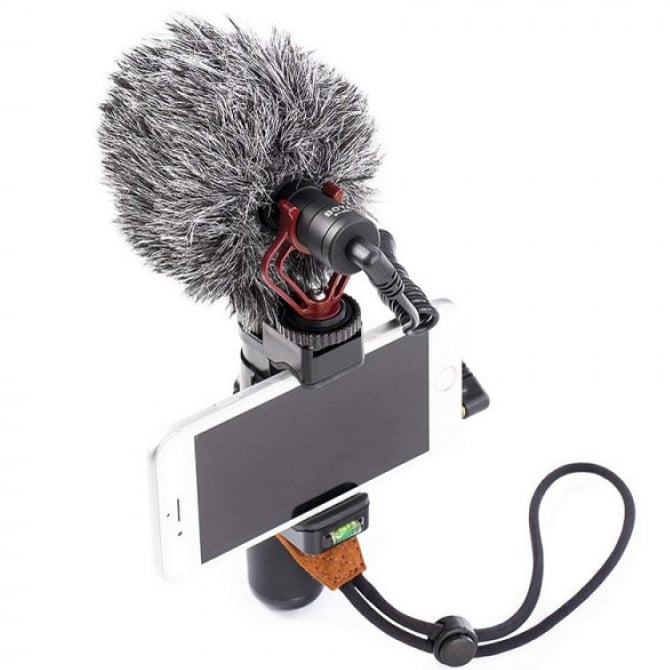 Καρδιοειδές Mini Μικρόφωνο με Γούνινο Αντιανέμιο 3.5mm TRS, 3.5mm TRRS Καλώδιο & Βάση Στήριξης - Boya
