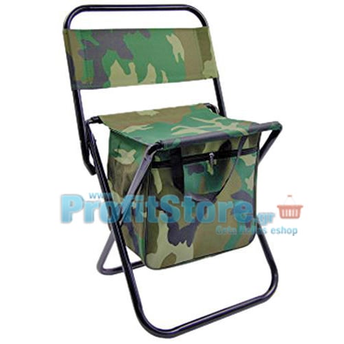 Ελαφρύ, αναδιπλούμενο καρεκλάκι ύψους 36 εκατοστών ( το κάθισμα ) σε χρώμα παραλλαγής με αποθηκευτικό σάκο κάτω από τη θέση, ιδανικό για το κυνήγι ή το ψάρεμα.