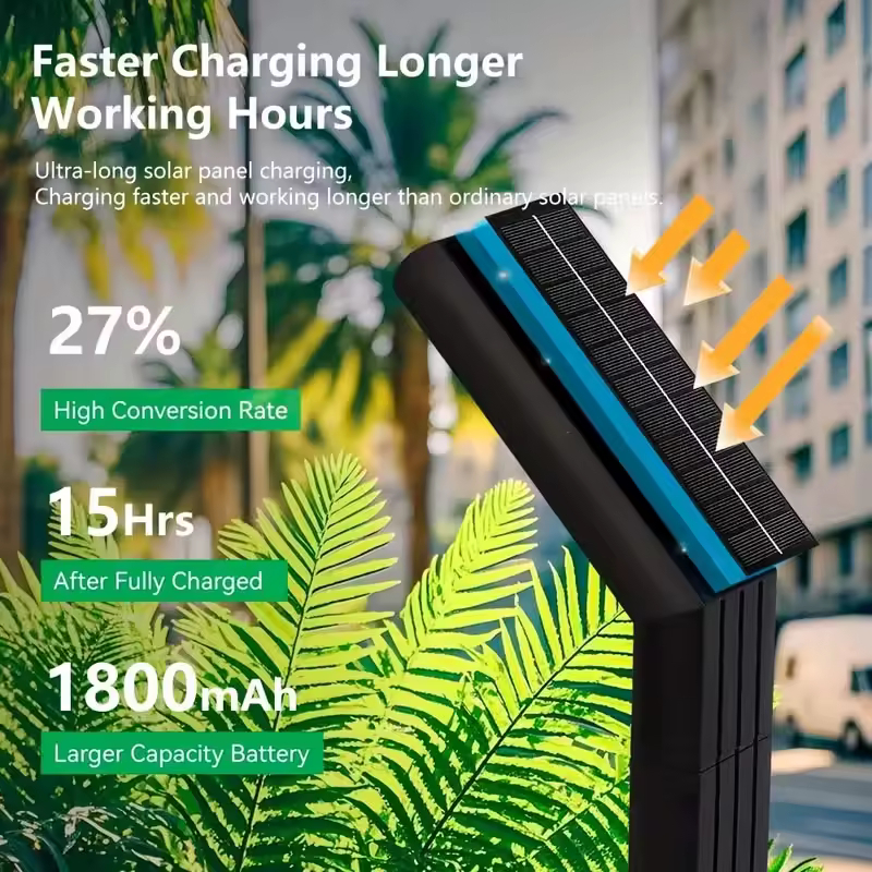 Το ηλιακό πάνελ 18 cm εξασφαλίζει αυτόνομη λειτουργία και μεγάλη διάρκεια φωτισμού, ενώ η εγκατάσταση γίνεται εύκολα είτε καρφωτά στο έδαφος είτε με βίδες σε σταθερή επιφάνεια.