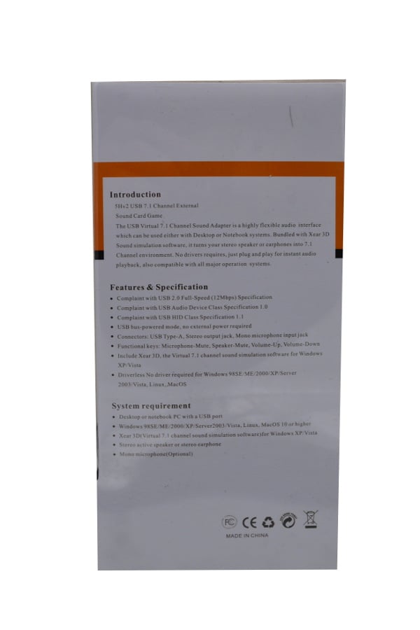 Με κορυφαία ποιότητα απόδοσης 3D sound simulation. Δυνατότητα ρύθμισης έντασης μικροφώνου και ακουστικών. Τεχνολογίας Plug and Play μέσω θύρας USB 2.0. Συμβατό με τις περισσότερες κύριες μάρκες υπολογιστών.