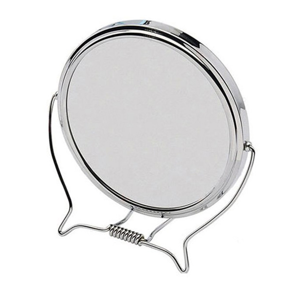 Inox καθρέφτης μακιγιάζ διαμέτρου 14 εκ, 2 όψεων με δυνατότητα περιστροφής 360 μοίρες και μεγέθυνση 3x στη μία όψη