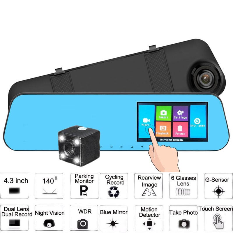 Καθρέπτης Αυτοκινήτου με Οθόνη Αφής LCD 4,3, Κάμερα Full HD DVR & Κάμερα Οπισθοπορείας OEM