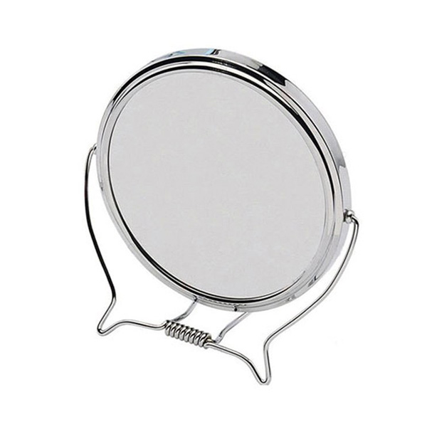 Inox καθρέπτης μακιγιάζ διαμέτρου 12 εκ, 2 όψεων με δυνατότητα περιστροφής 360 μοίρες και μεγέθυνση 3x στη μία όψη