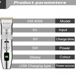 Kemei® Επαγγελματική Κουρευτική Μηχανή 5W Επαναφορτιζόμενη Ρυθμιζόμενου Μήκους Κοπής με Ενδεικτική Λυχνία Μπαταρίας