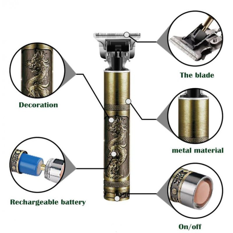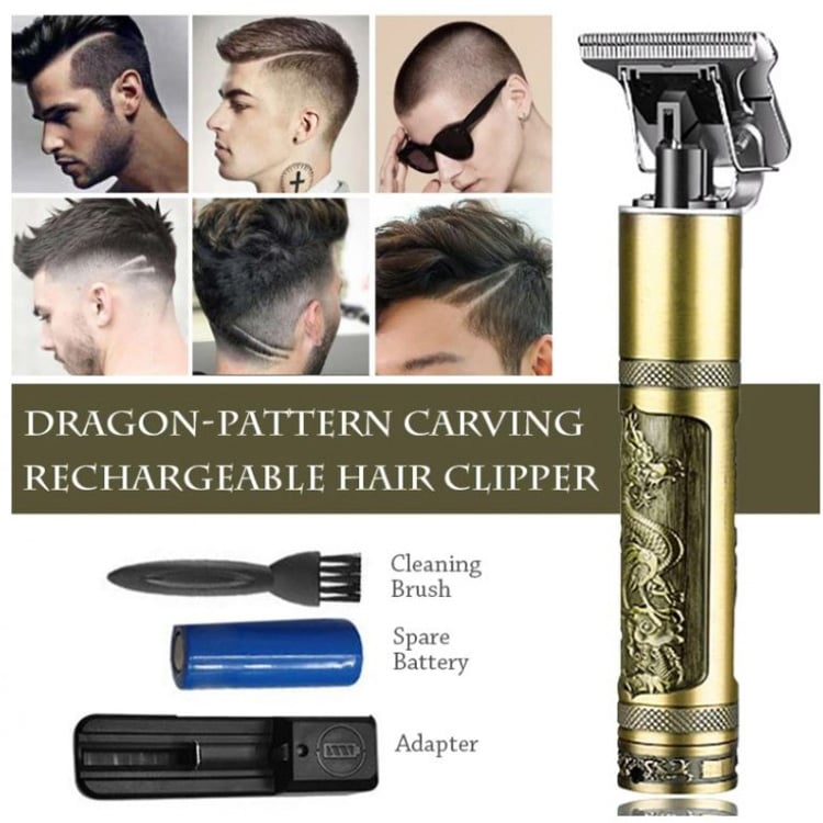 Kemei® Επαγγελματική Κουρευτική Μηχανή 5W Επαναφορτιζόμενη Ρυθμιζόμενου Μήκους Κοπής & με Λεπίδες Carbon - Χρυσή με Ανάγλυφο Δράκο