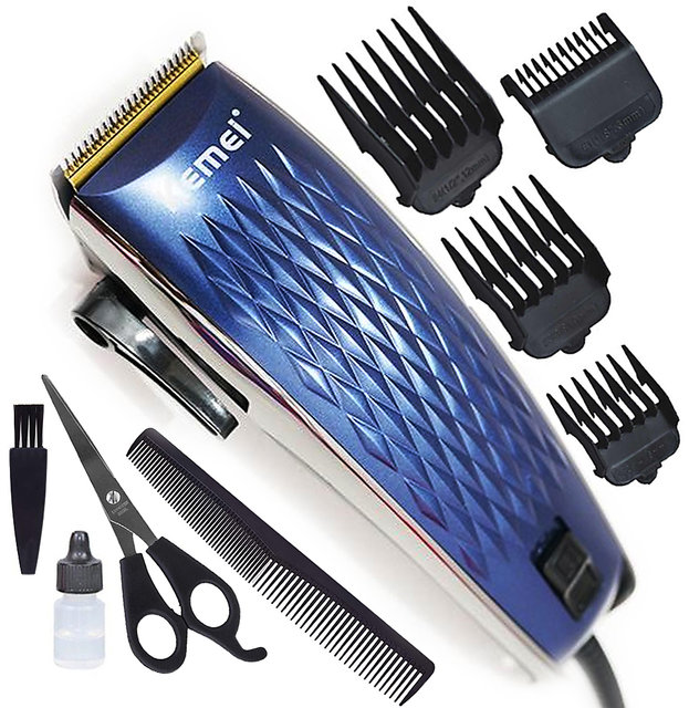 Kemei Επαγγελματική Κουρευτική Μηχανή Ρεύματος 12W με Καλώδιο Ρυθμιζόμενου Μήκους με Ψαλίδι και Χτένα