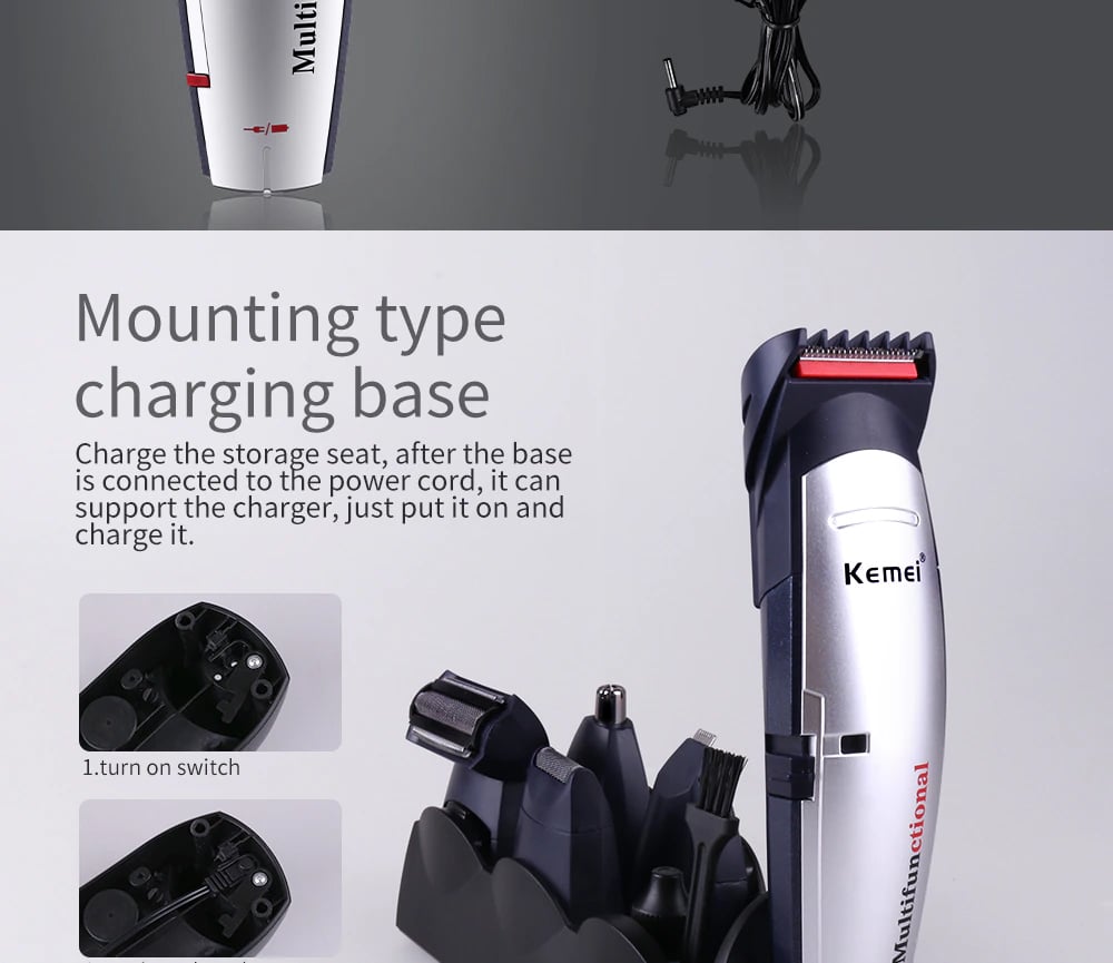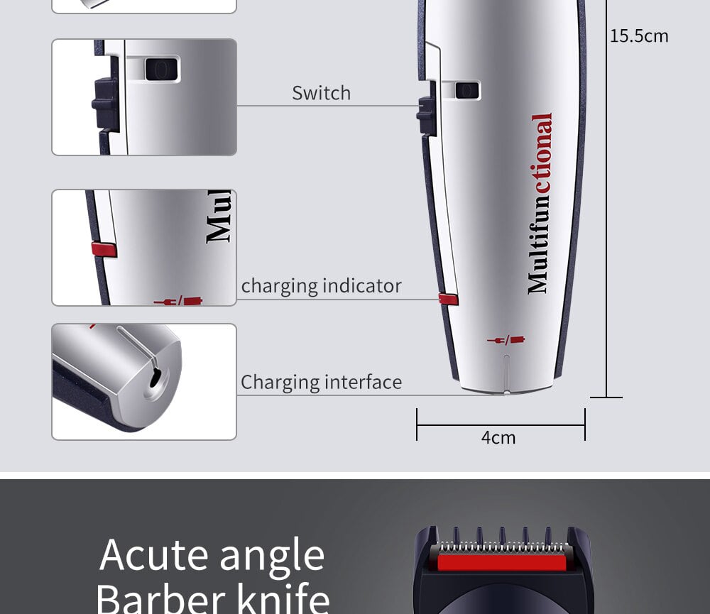 Συνοδεύεται από πολλαπλά εξαρτήματα για να κόψετε μαλλιά, μούσι, μουστάκι, μικροξυριστική μηχανή για καθημερινό ξύρισμα, αλλά και εξάρτηματα για την περιποίηση του σώματος αλλά και της μύτης που είναι απαραίτητα για κάθε άντρα.
