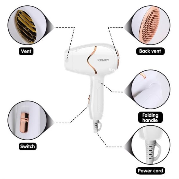- 1 x Kemey® Αναδιπλούμενο Πιστολάκι - Σεσουάρ Μαλλιών Ταξιδιού