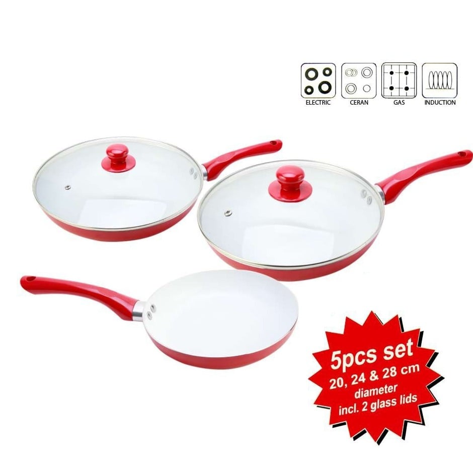 Κεραμικά Τηγάνια με Αντικολλητική Επίστρωση & Γυάλινα Καπάκια - Σετ των 5 τεμαχίων