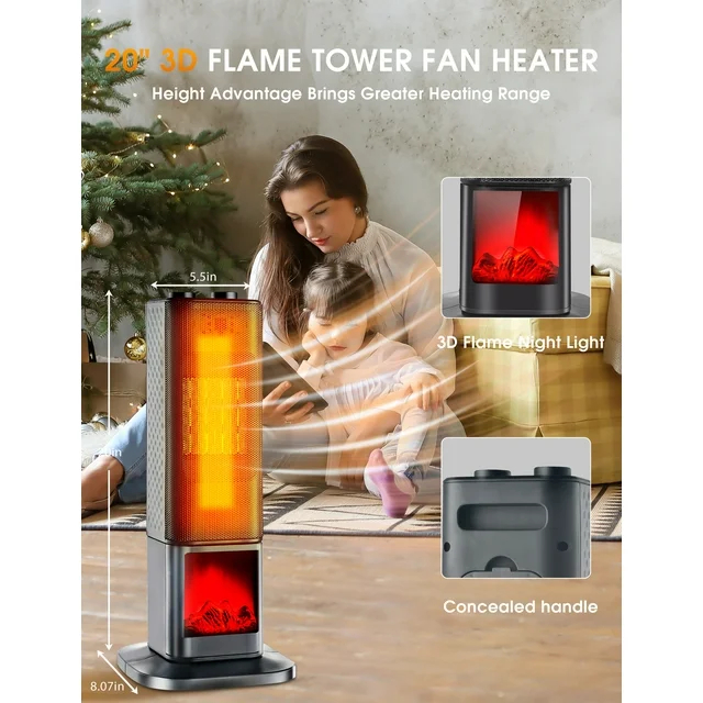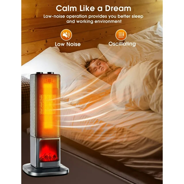 Κεραμικός Θερμαντήρας Χώρου 1800W με 3D Εφέ Φλόγας, Αθόρυβη Λειτουργία & ECO Mode - Andowl