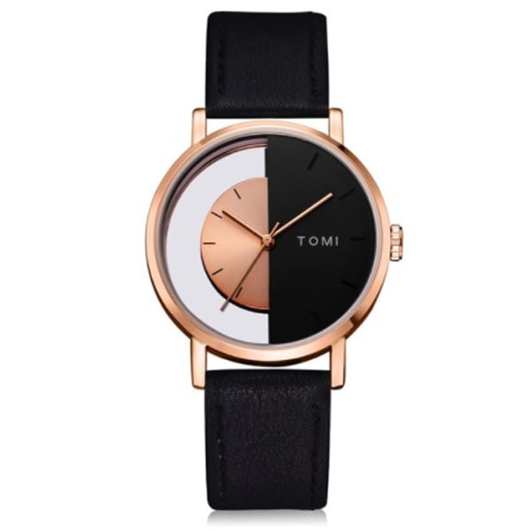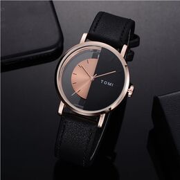 Κλασικό Ρολόι TOMI - Unisex Leather Casual Analog Watch Μαύρο - Ροζέ Χρυσό