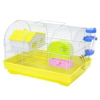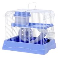 Πλήρως εξοπλισμένο διώροφο κλουβί για χάμστερ και μικρά τρωκτικά. Περιλαμβάνει σπιτάκι, τσουλήθρα, ρόδα, ταίστρα, ποτίστρα. Το σπιτάκι είναι τοποθετημένο ψηλά και βγαίνει με μια κίνηση για εύκολο καθαρισμό, χωρίς να χρειάζεται να ανοίξετε το κλουβί.
