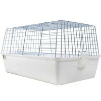 Κλουβί για κουνέλι με μεταλλικό πλέγμα και ανθεκτική πλαστική βάση. Διαστάσεις 59×35,5×31,5 cm, εύκολο στον καθαρισμό και κατάλληλο για εσωτερική ή προστατευμένη εξωτερική χρήση.