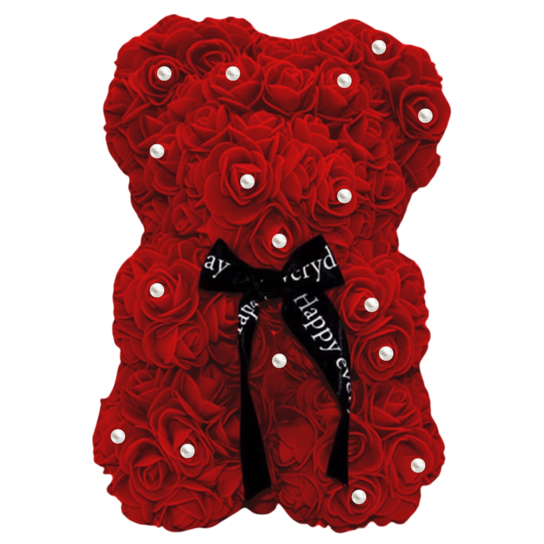 Αρκουδάκι από Τεχνητά Τριαντάφυλλα και Πέρλες 25 cm