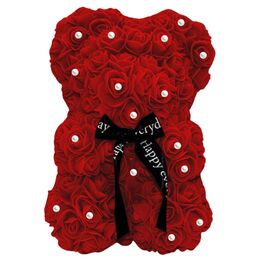 Κόκκινο Αρκουδάκι από Τεχνητά Τριαντάφυλλα και Πέρλες 25 cm