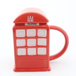 Κεραμική κούπα σε σχήμα Κόκκινου Βρετανικού Τηλεφωνικού Θαλάμου με Καπάκι για όσους αγαπούν την βρετανική κουλτούρα και όχι μόνο! Το καπάκι που την συνοδεύει προστατεύει το ρόφημά σας από την σκόνη και κρατάει λίγο περισσότερο το ρόφημά σας ζεστό.