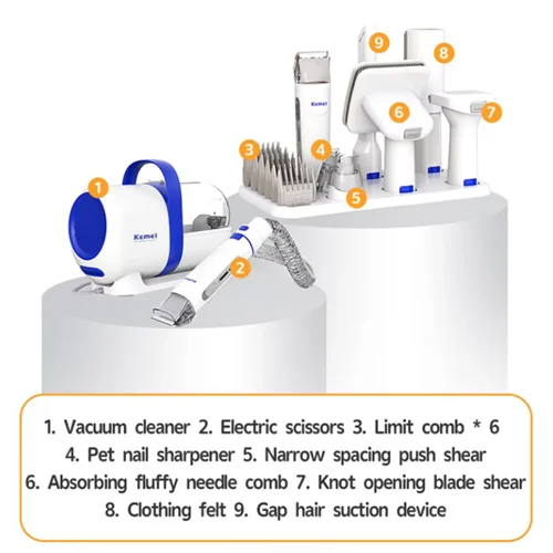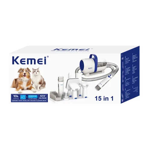 Κουρευτική Μηχανή για Σκύλους και Γάτες με Ηλεκτρική Σκούπα και Αθόρυβη Λειτουργία Kemei