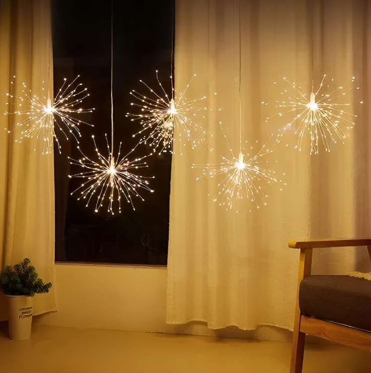 Απολαύστε στο σπίτι, τον κήπο ή οποιοδήποτε χώρο μια εντυπωσιακή, ζεστή και κομψή ατμόσφαιρα με την Κρεμαστή Διακοσμητική Κουρτίνα με Πυροτεχνήματα.