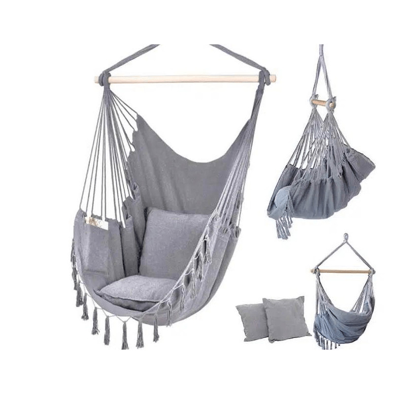 Κρεμαστή Κούνια-Αιώρα Romantic με Αναπαυτικό Μαξιλάρι και Διακοσμητικές Φούντες-Γκρί
