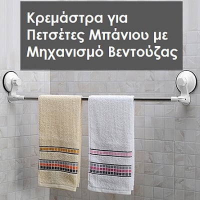 - Συγκαταλέγεται σίγουρα στον απαραίτητο εξοπλισμό για το μπάνιο. Μία κρεμάστρα για τις πετσέτες του μπάνιου σας με όμορφο design σε μεταλλικό χρώμα με λευκές βεντούζες.