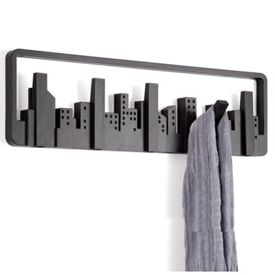 Διαθέτει 5 αναδιπλούμενες θέσεις για να κρεμάτε ρούχα, ζακέτες, μπουφάν, παλτό, τσάντες, ομπρέλες κτλ. Όταν δεν θα έχετε κάτι κρεμασμένο, τότε η κρεμάστρα μετατρέπετε σε ένα όμορφο διακοσμητικό για τον τοίχο σας δείχνοντας της γραμμή ορίζοντα μιας μεγαλούπολης όπως η Ν. Υόρκη.