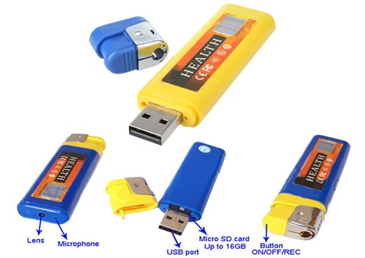 Ένα πολύ εύχρηστο και μικρό εργαλείο για να καταγράφετε στιγμές της ζωής σας χωρίς να γίνεστε αντιληπτοί από τους άλλους. Κάμερα Αναπτήρας, ψηφιακό καταγραφικό βίντεο και ήχου με θύρα microSD. Ο Αναπτήρας αυτός καταγράφει βίντεο και ήχο με τρόπο πραγματικά μοναδικό και χωρίς να σας αντιληφθεί κανείς. Απλά το έχετε πάνω στα τσιγάρα σας και αυτό καταγράφει αθόρυβα στην μνήμη εικόνα και ήχο. Στη συνέχεια μέσω της θύρας USB που έχει, μπορείτε να το συνδέσετε στον υπολογιστή σας και να μεταφέρετε τις καταγραφές σας.