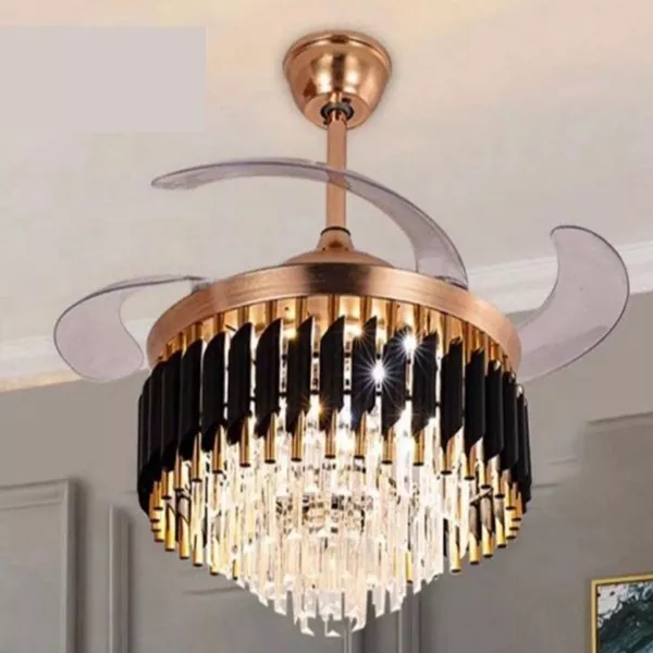 Κρυστάλλινος Πολυέλαιος με Αθόρυβο Ανεμιστήρα Οροφής 42″, LED Ρυθμιζόμενος Φωτισμός, Τηλεχειριστήριο και Ρυθμιζόμενη Ταχύτητα 72w Χρυσό Μαύρο