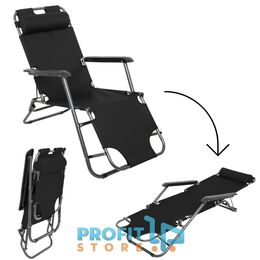 Ξαπλώστρα - Πολυθρόνα Παραλίας Πολλαπλών Θέσεων με Μεταλλικό Σκελετό - Μαύρη - 163 x 60 x 75 εκ.