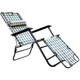 Ξαπλώστρα - Πολυθρόνα Παραλίας Πολλαπλών Θέσεων με Ρυθμιζόμενη Πλάτη και Μεταλλικό Σκελετό - Πράσινο Καρό