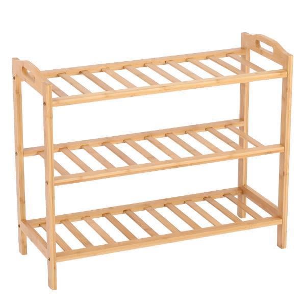 Ξύλινη Bamboo Παπουτσοθήκη - Ραφιέρα Δαπέδου με 3 Ράφια - 68 x 24 x 52 cm